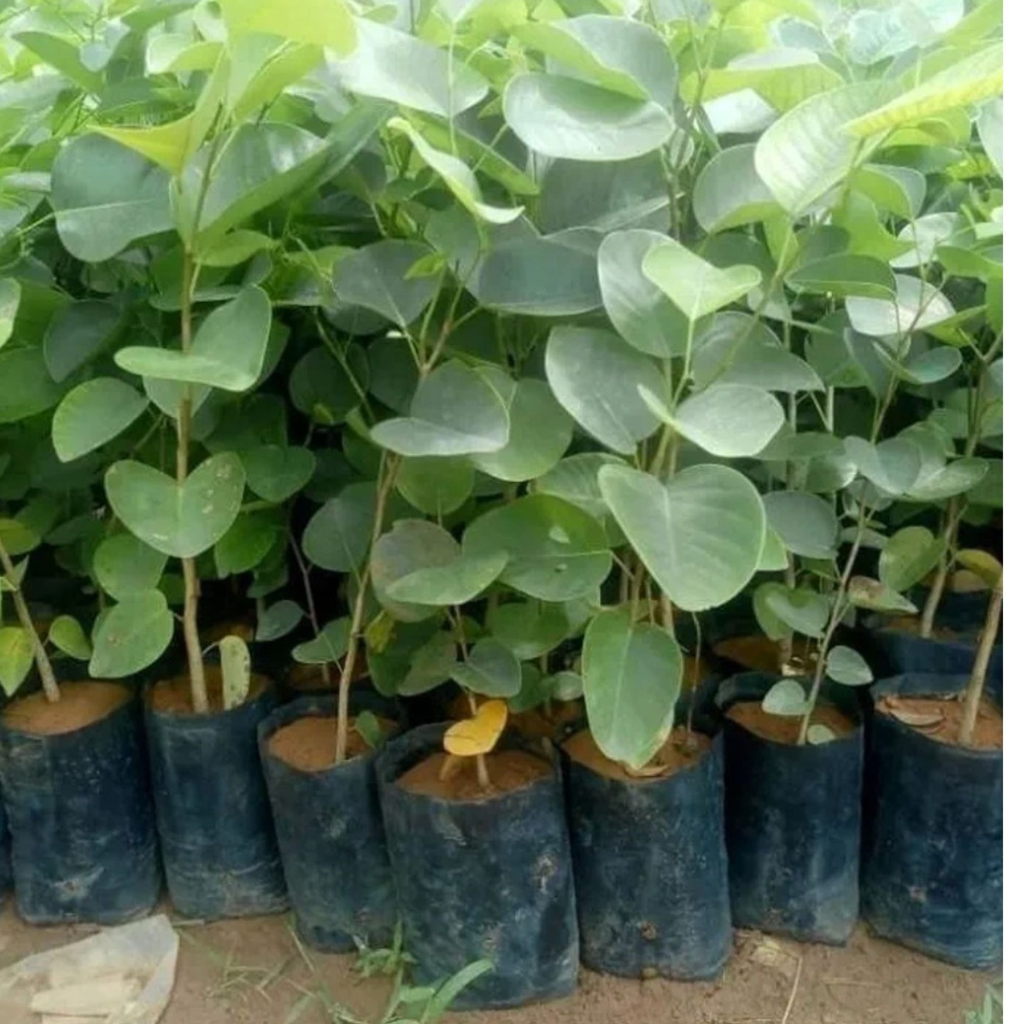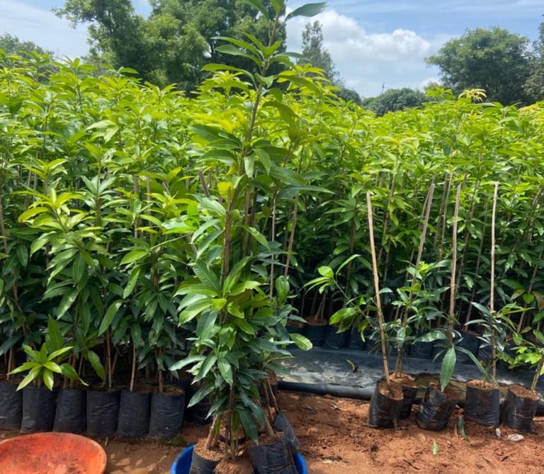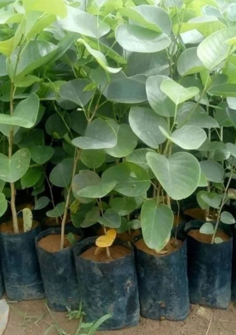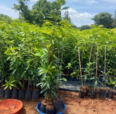 A vibrant assortment of ayurvedic and vastu plants in colorful pots.